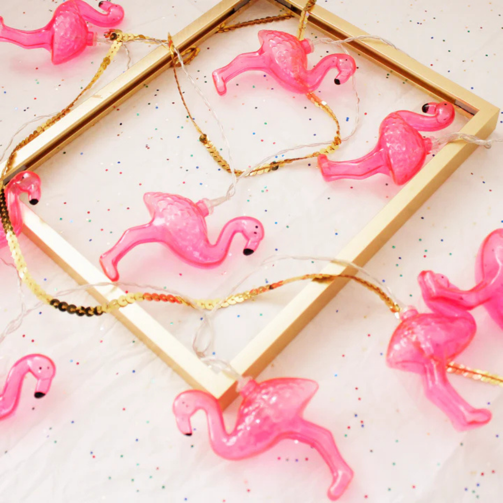 - flamingo string lights, tropical LED lights, pink flamingo décor, warm white window lights, indoor outdoor flamingo lights, holiday party string lights