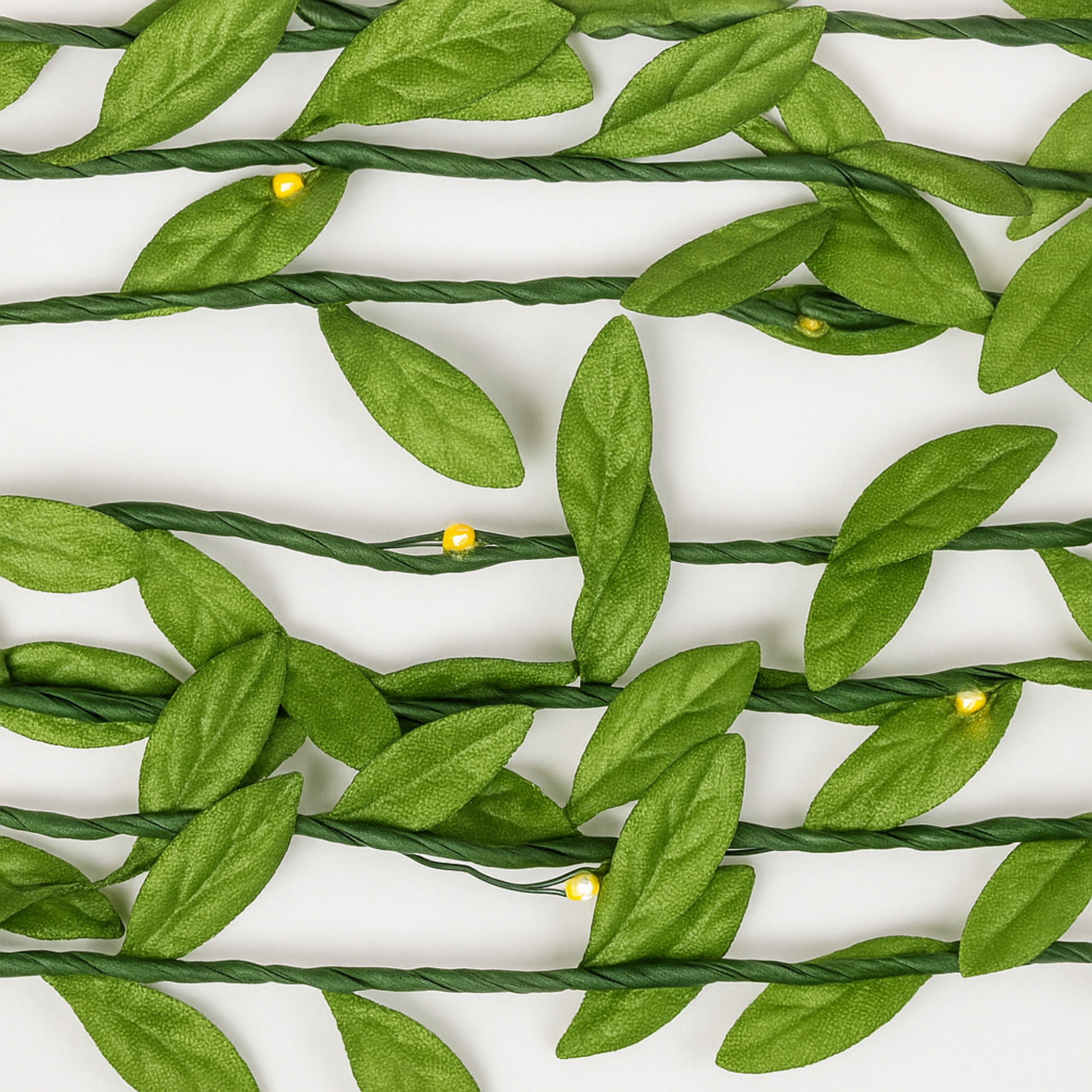 Bring botanical charm and ambient lighting to your space with this 20 LED Plant Leaf Vine Fairy Light. Designed with delicate silver-toned leaves wrapped around a flexible copper wire, this fairy light strand adds a lush, organic aesthetic to any setting. Whether you're styling a bedroom, balcony, or party table, the warm glow of the LEDs paired with the realistic vine design creates a cozy, plant-inspired atmosphere. Easy to wrap, hang, or weave into décor elements, this lighted garland is perfect for enhancing privacy on patio fences, decorating headboards or shelves, or giving your event table a vibrant, nature-inspired accent