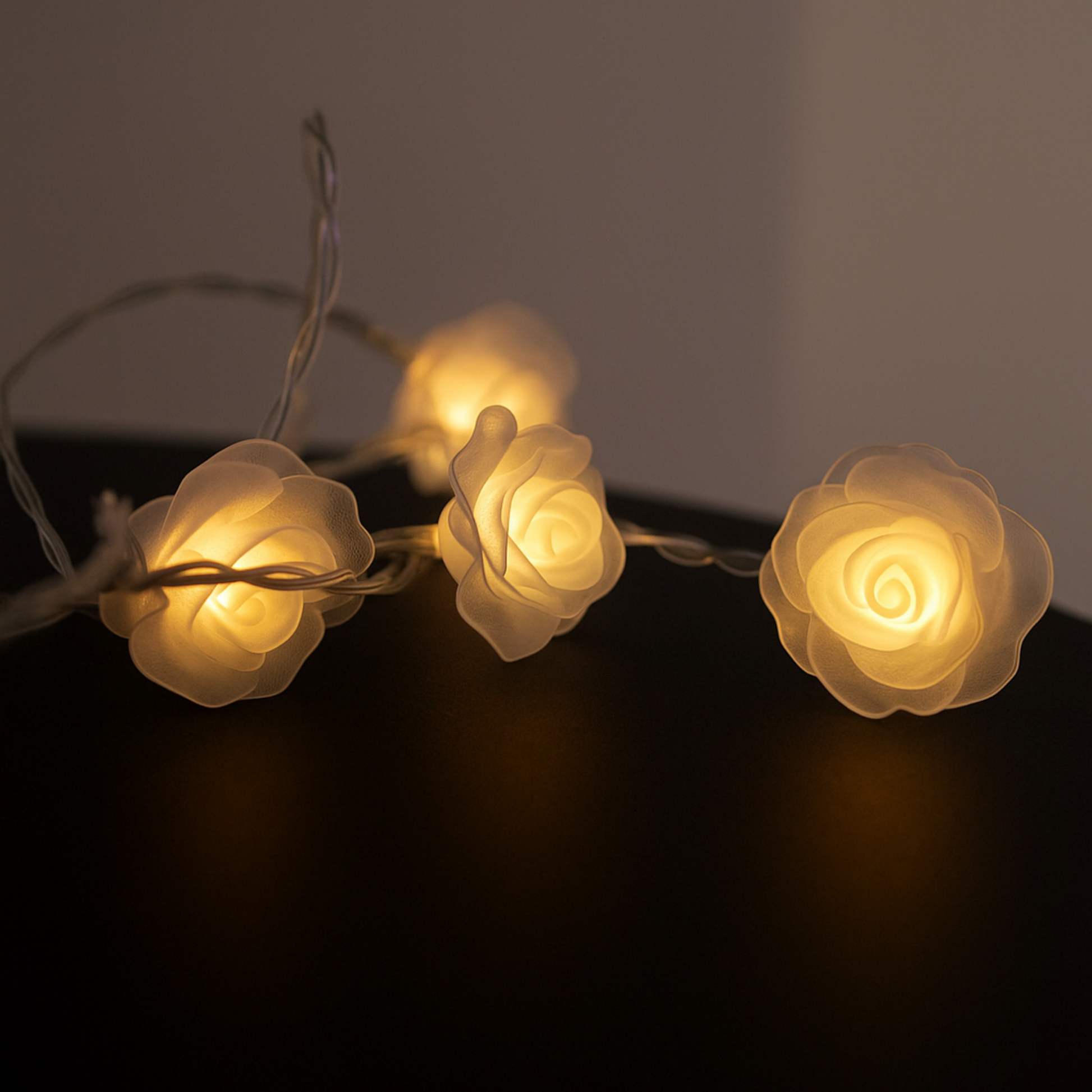 Add a romantic touch to your space with Elegani’s 20 LED Rose Flower String Lights, featuring delicate PVC rose blooms paired with warm white 5mm LEDs. easy to position anywhere, these charming lights offer soft, ambient illumination perfect for weddings, bedrooms, romantic evenings, or floral-themed parties. Each rose glows gently, creating a cozy and elegant atmosphere without the need for outlets or cords. The flexible wire design allows for effortless draping, wrapping, or styling along headboards, mirrors, centerpieces, or gift displays. Whether you're designing a dreamy bridal backdrop or creating a calming bedroom nook, these lightweight and cordless lights are your go-to for floral-inspired elegance.