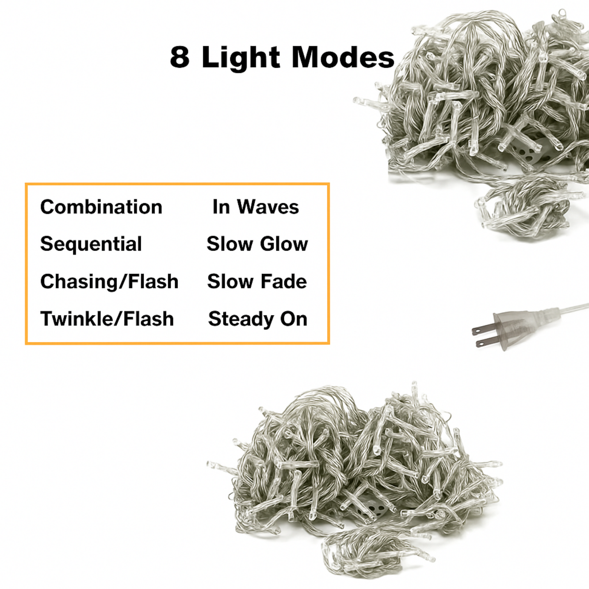 - 8 Lighting Modes: Includes combination, in waves, sequential, slo-glo, chasing/flash, slow fade, twinkle/flash, and steady on.