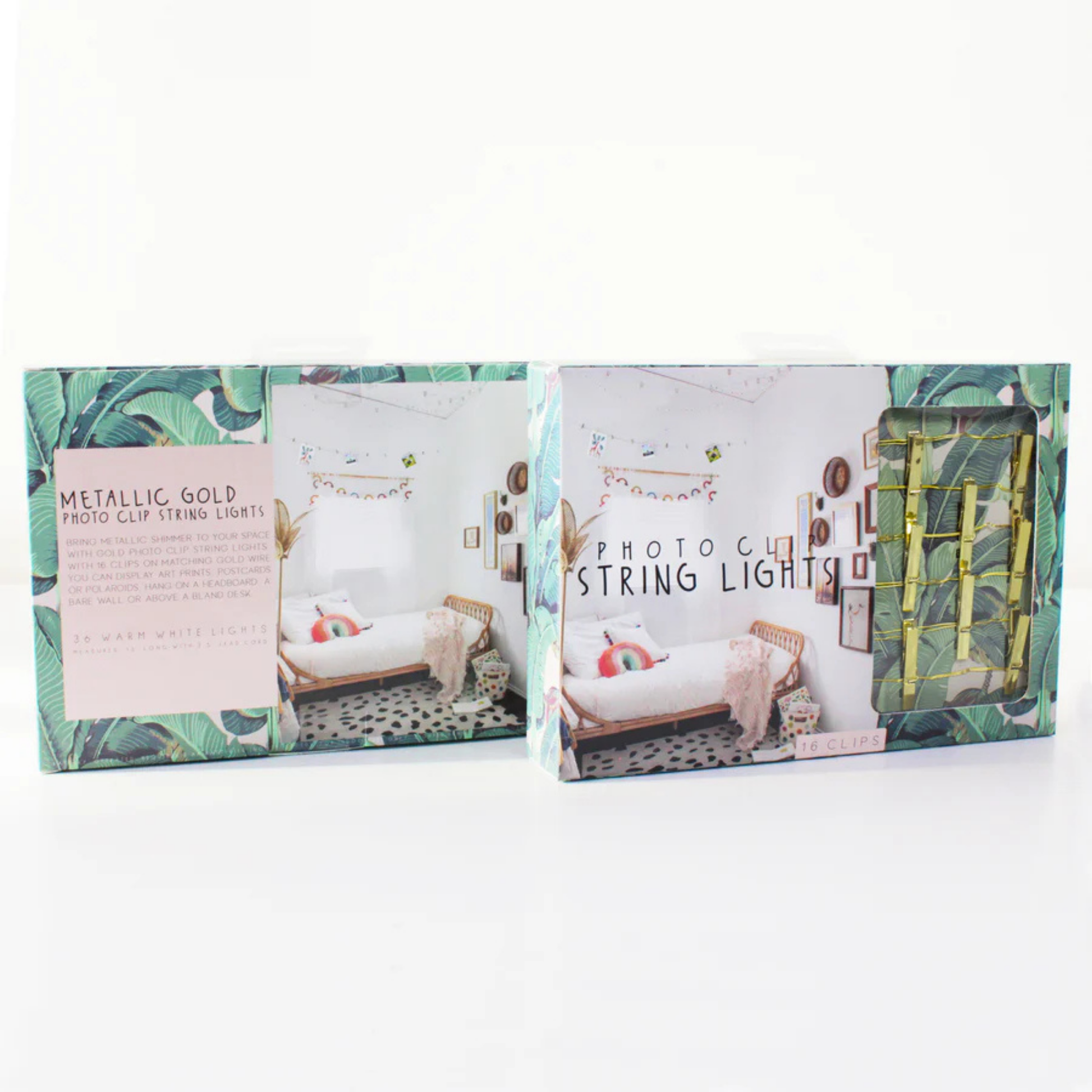 Brighten your space with this elegant 36 LED Gold Photo Clip String Light. Featuring metallic gold photo clips and warm white lights, this 13-foot string light adds a decorative touch to bedrooms, dorm rooms, and creative workspaces. Whether you’re decorating for a special event or simply updating your home décor, this flexible and portable string light brings charm and a soft ambient glow to any setting.