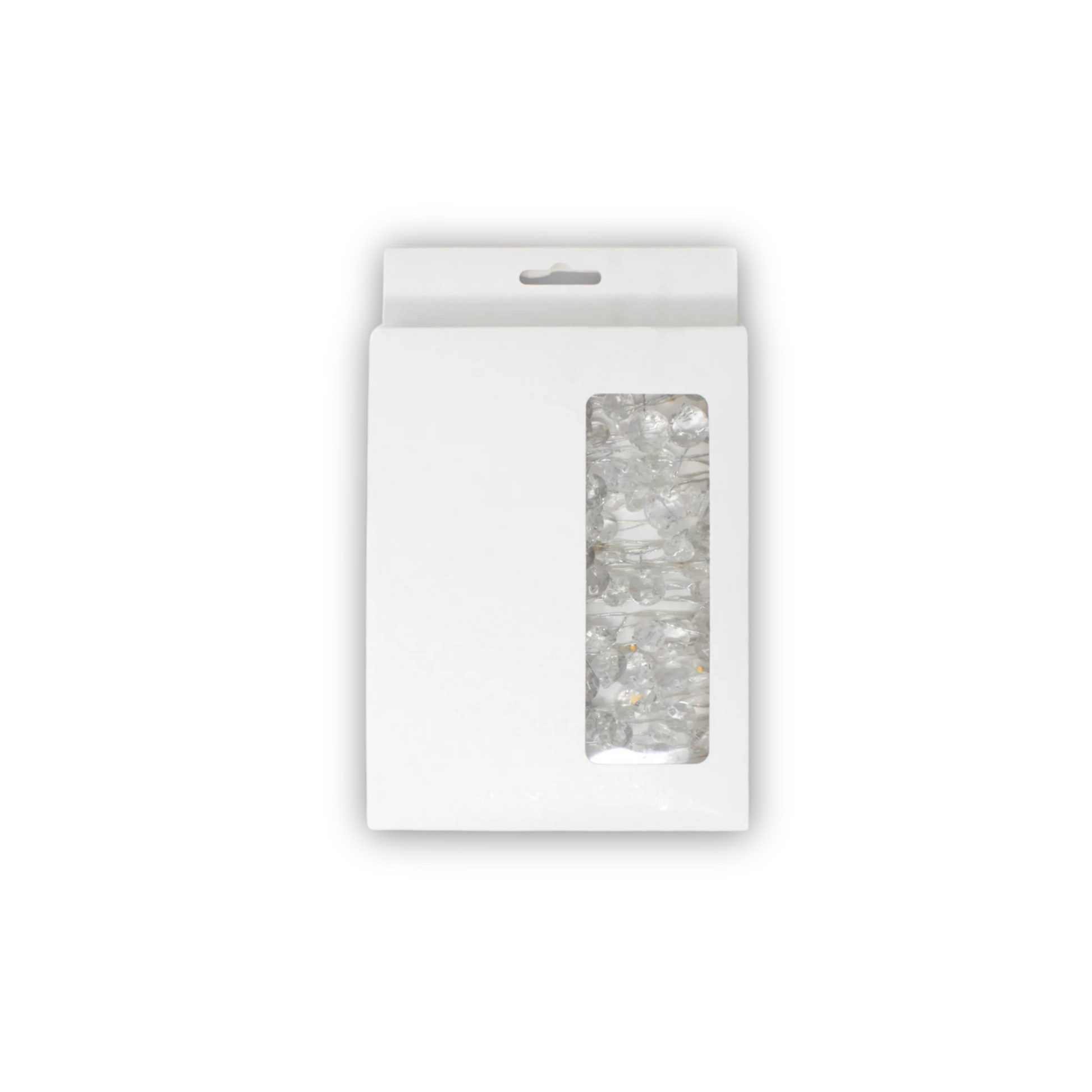 Illuminate your space with the enchanting glow of these 40 LED Crystal Gemstone Fairy String Lights. Featuring 97 glimmering crystal-like stones on bendable silver copper wire, this battery-operated string light casts a soft warm white glow perfect for elevating any ambiance. With a total length of 16ft 4in, including a 15ft 4in lighted cord and 1ft of clear lead wire, these lights are versatile and easy to arrange in bedrooms, nurseries, patios, baby showers, weddings, or festive holiday décor. Designed for ease of use without the need for a wall outlet, simply insert batteries (not included) and style your environment with shimmering charm.