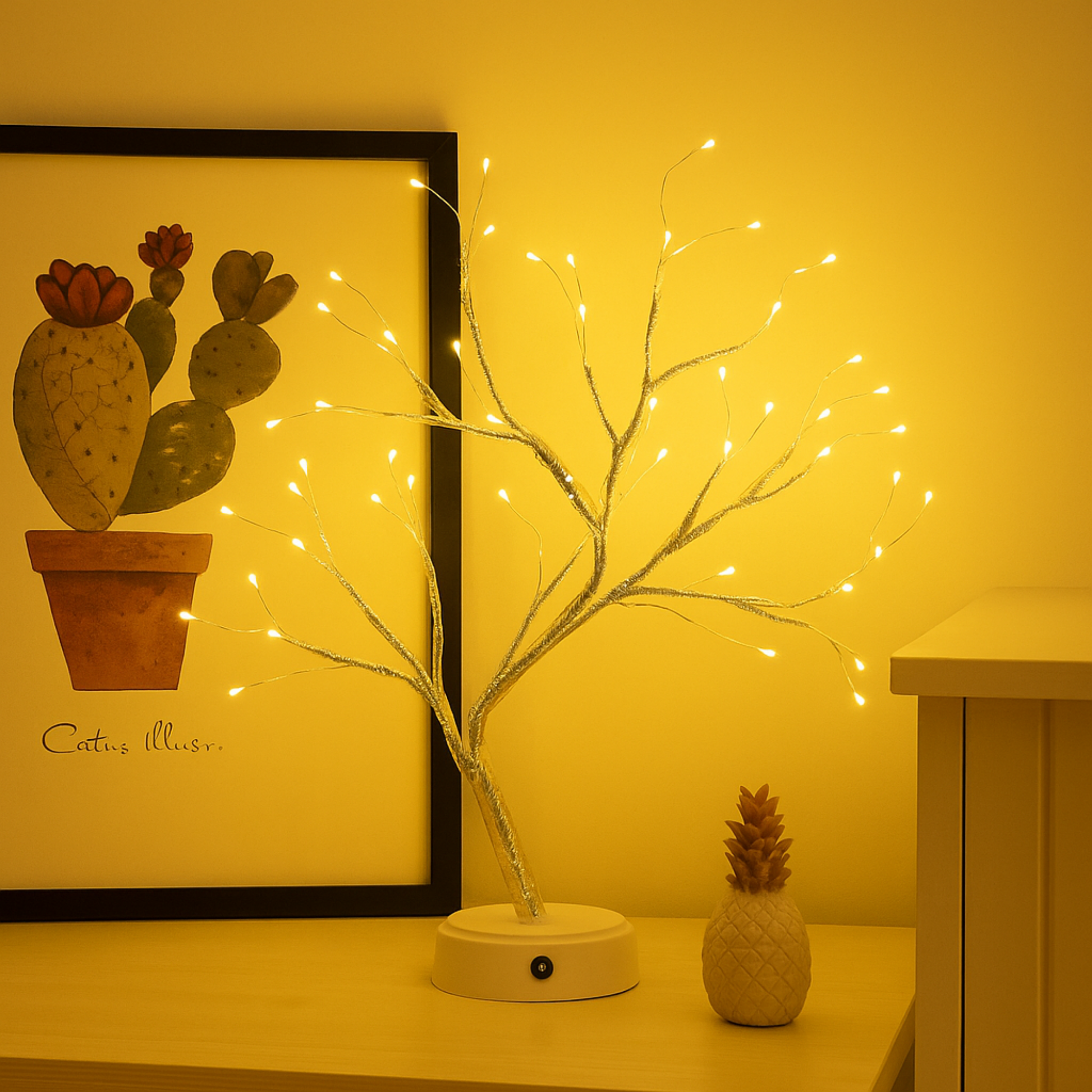 Elegani 60 LED Warm White Tree String Lights – 20ft Silver Wire, 4" Spacing, Indoor/Outdoor Use, Ideal for Bedroom, Party, Wedding, and Holiday Decor