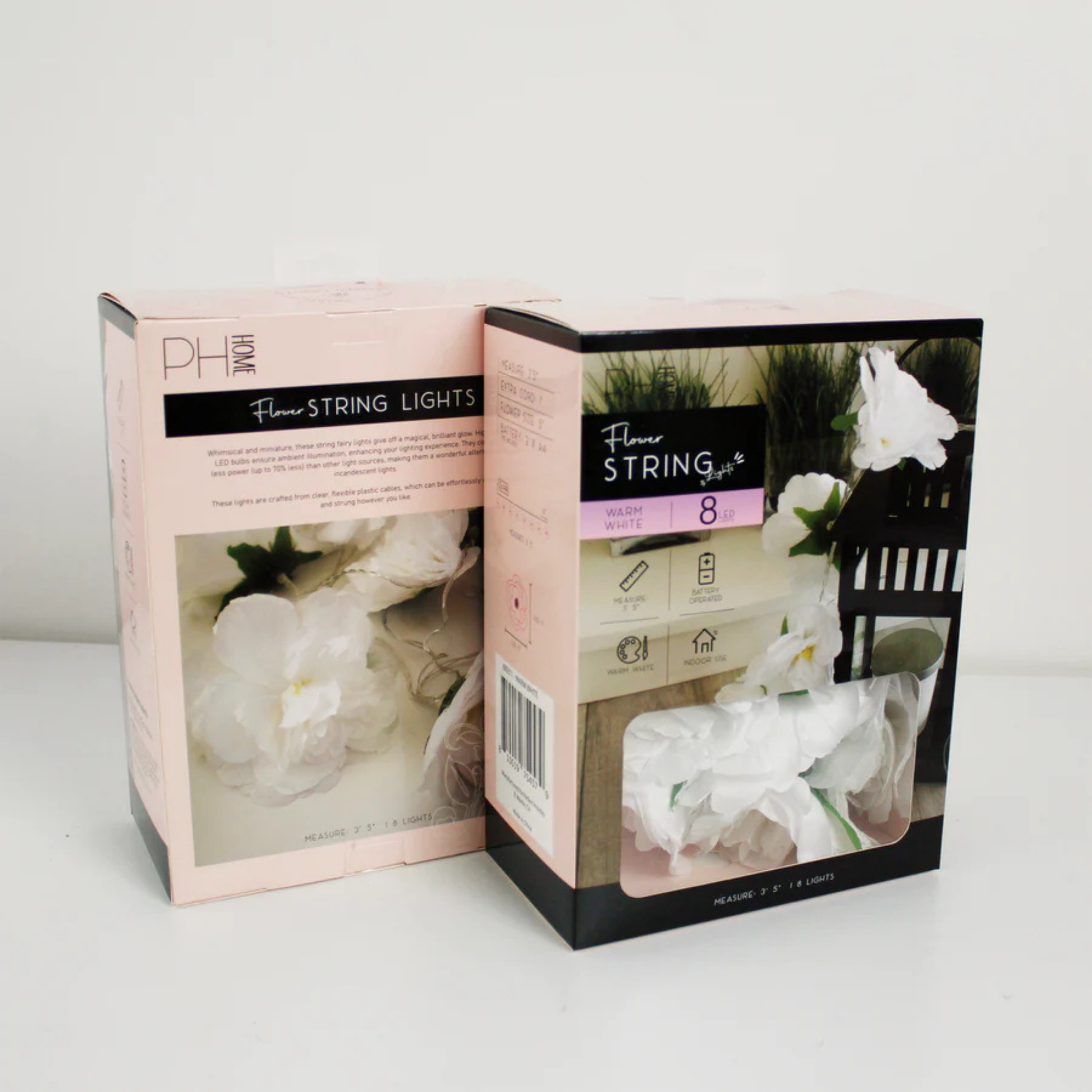 Elegani 8 LED White Flower String Lights – Warm White Floral Fairy Lights for Home and Event Décor