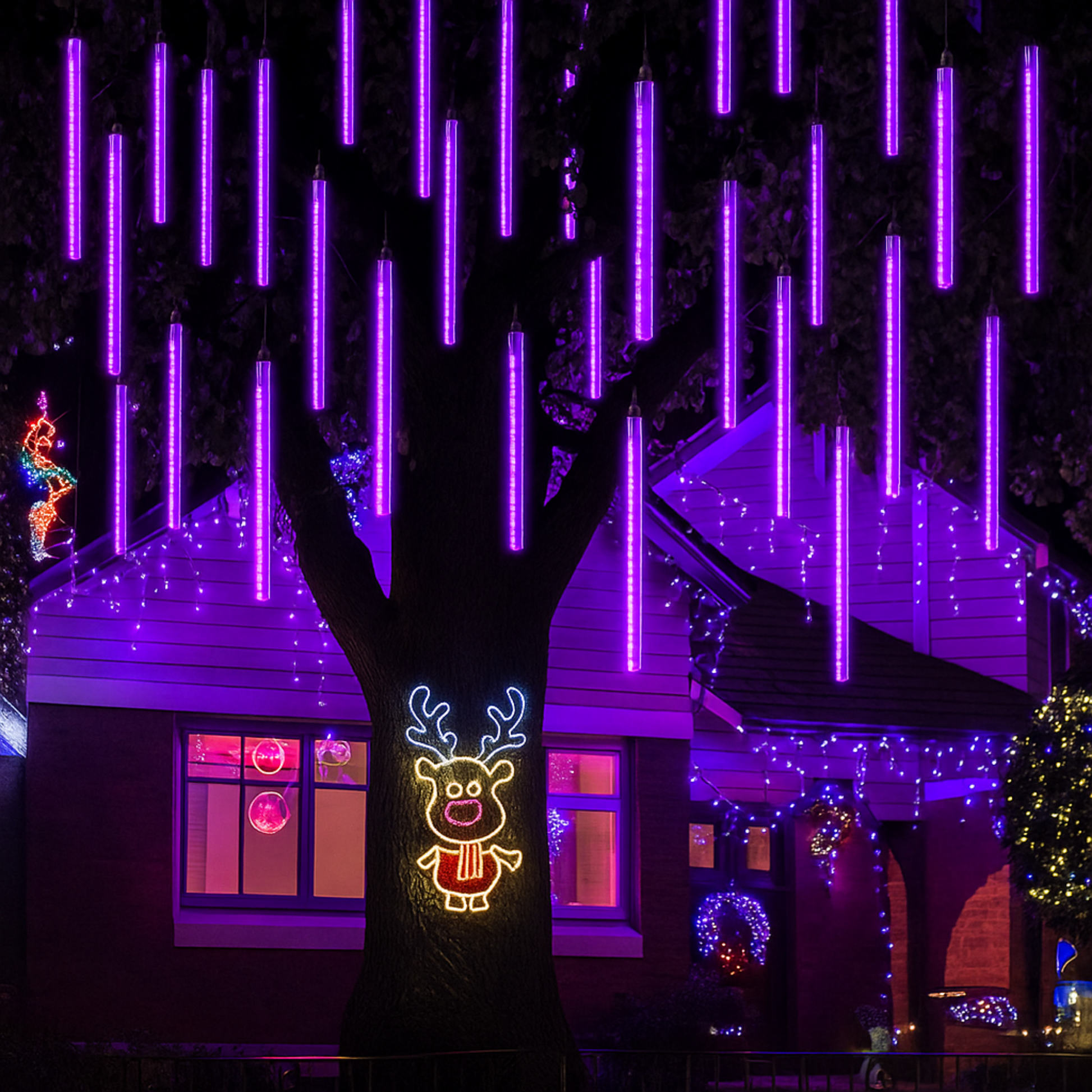 - purple LED snowfall lights, 8-tube 50cm meteor lights, waterproof plug-in indoor outdoor party lighting, holiday décor