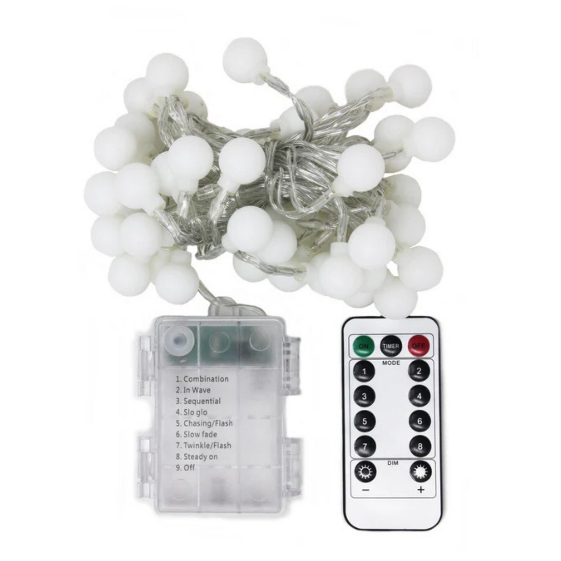 Create a cozy and inviting atmosphere with these Frosted Globe String Lights featuring 50 warm white LEDs and a remote control for effortless customization. With a soft, frosted finish, each globe gently diffuses light, making it perfect for both holiday charm and everyday ambiance. The included remote lets you easily switch between 8 lighting modes including Twinkle, Slo-Glo, and Steady On. Whether draped on a mantel, wrapped around a railing, or used in bedrooms or events, this 15.7ft string light adds a gentle glow to any space.