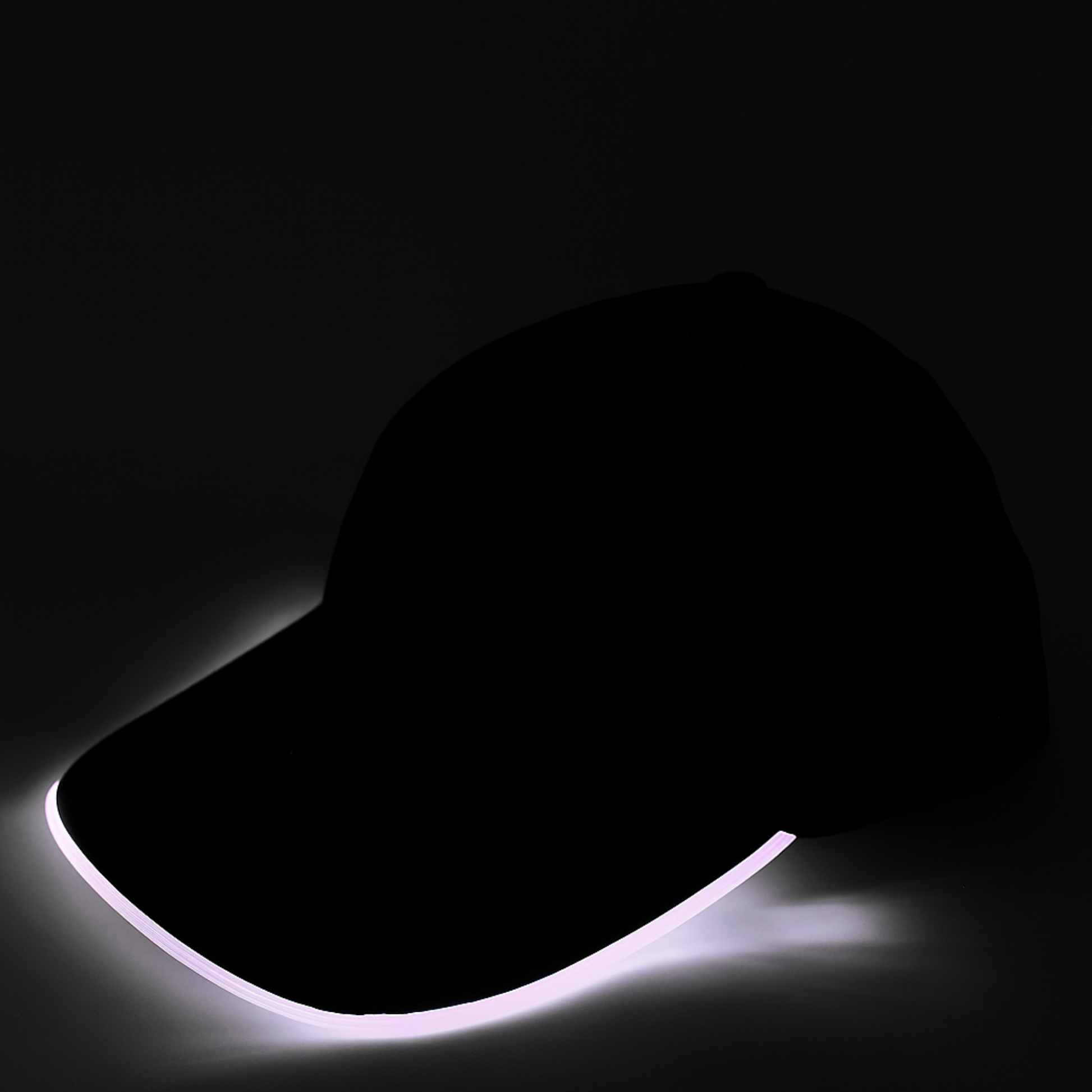 Stay visible and stylish in the dark with the Night Runner LED Glow Hat, featuring a sleek traditional baseball cap design and brilliant white LED lighting around the brim. Whether you're jogging after sunset, biking before dawn, or attending an outdoor evening event, this luminous hat enhances safety without sacrificing comfort. The built-in LED strip offers three light settings—flashing, blinking, and steady on—easily controlled by a discreet button inside the rim. With an adjustable velcro closure, this one-size-fits-most cap is both functional and fashionable for nighttime activities, from casual walks to night sports and festivals.
