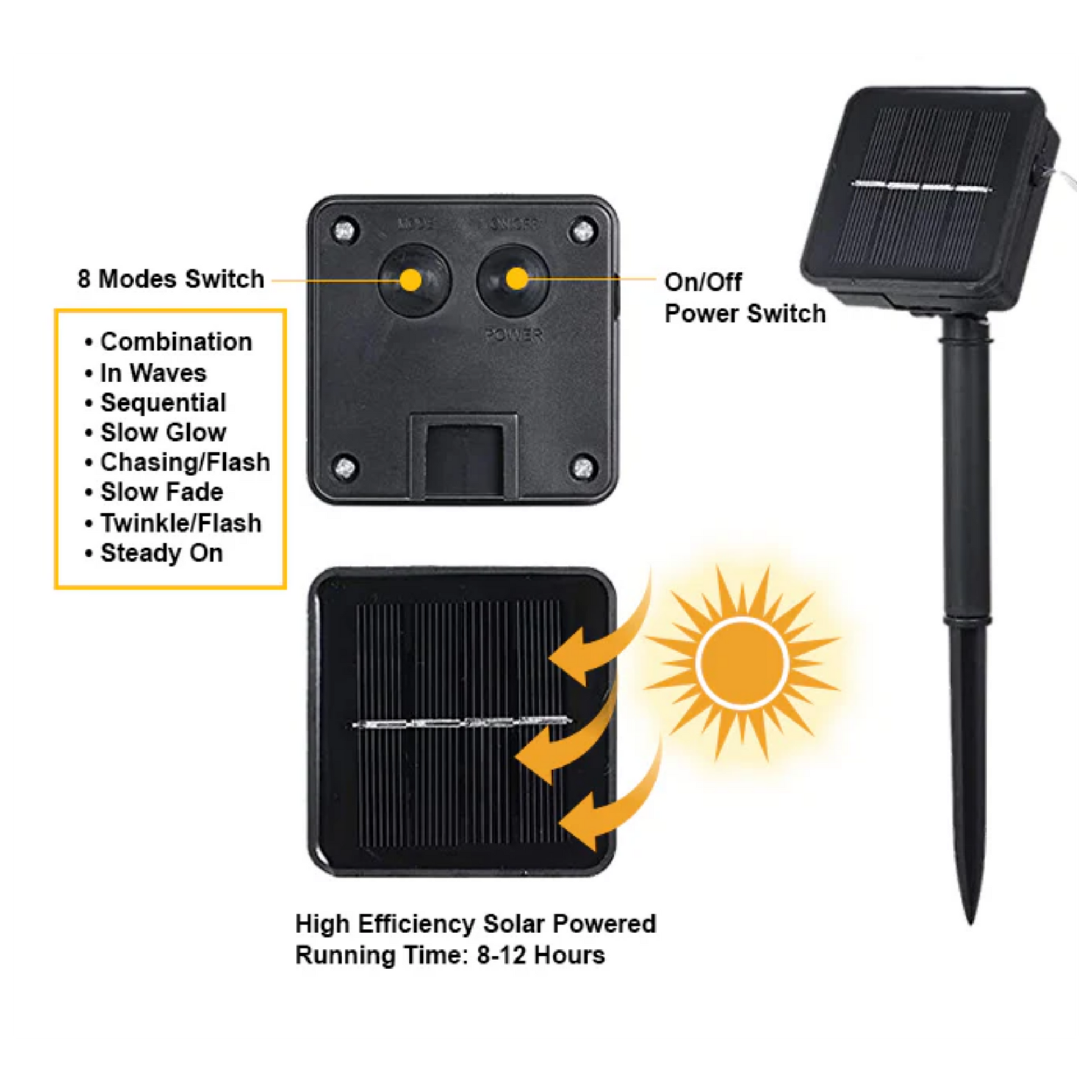 - Solar Powered & Automatic: Charges by day and turns on automatically at night—no outlets needed