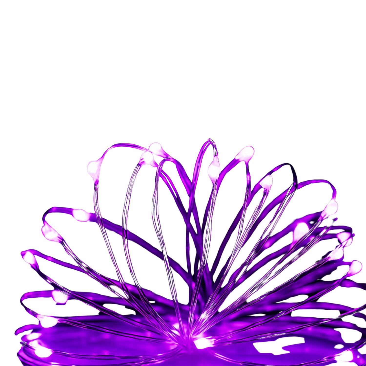 - 100 LED purple copper fairy string lights enhance rooms, parties, and festive decor with vivid indoor/outdoor lighting.